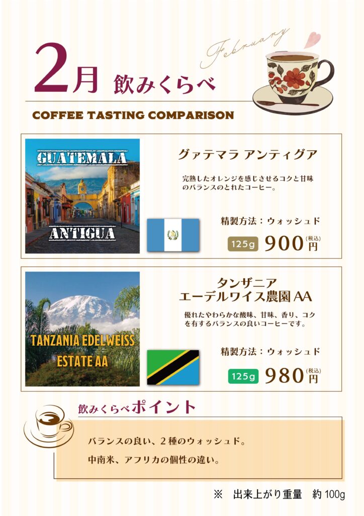 2月の飲みくらべコーヒーは、ウォッシュドの2種☕